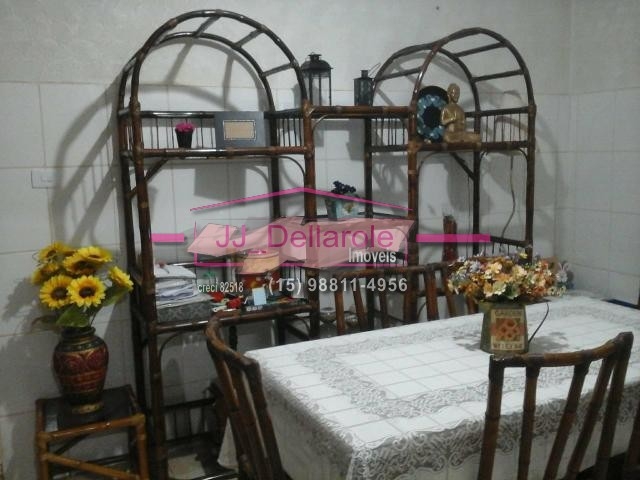 com 3 dormitórios sendo 1 suite, banheiro social, cozinha, sala jantar, sala de TV, varanda de um lado da casa onde tem lavanderia e churrasqueira.