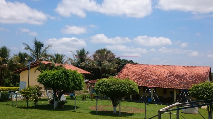 Toda avarandada, wc externo, vestiário, lavanderia,área de serviço,área gourmet c/ churrasqueira,Piscina de vinil com cascata, campo de futebol,