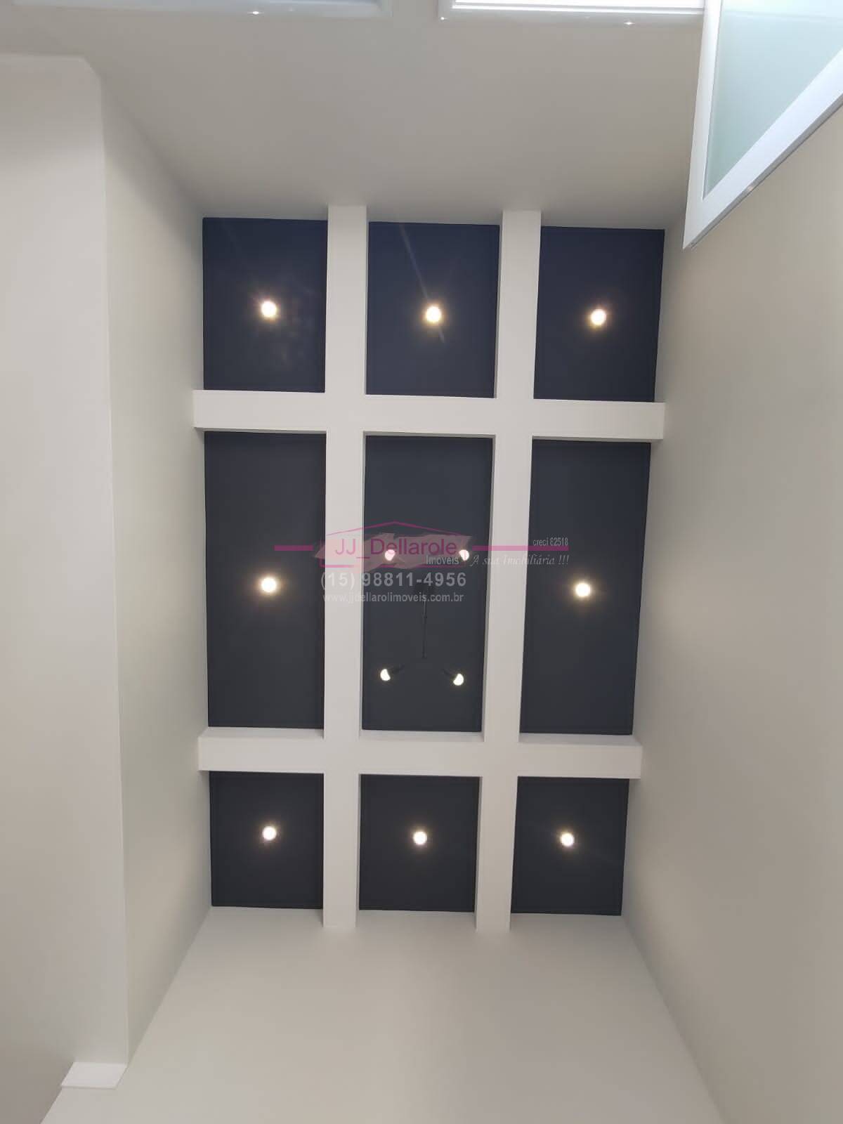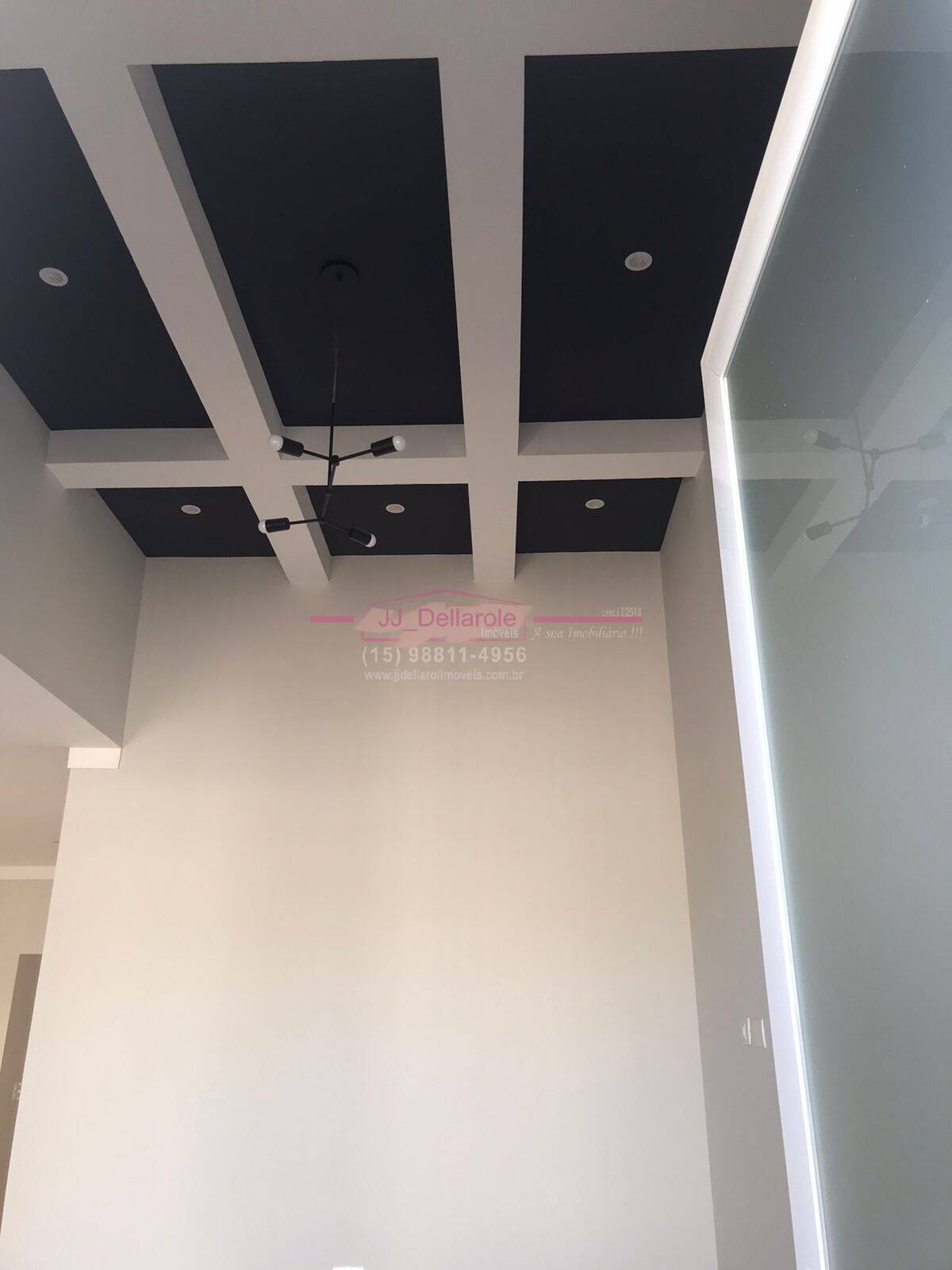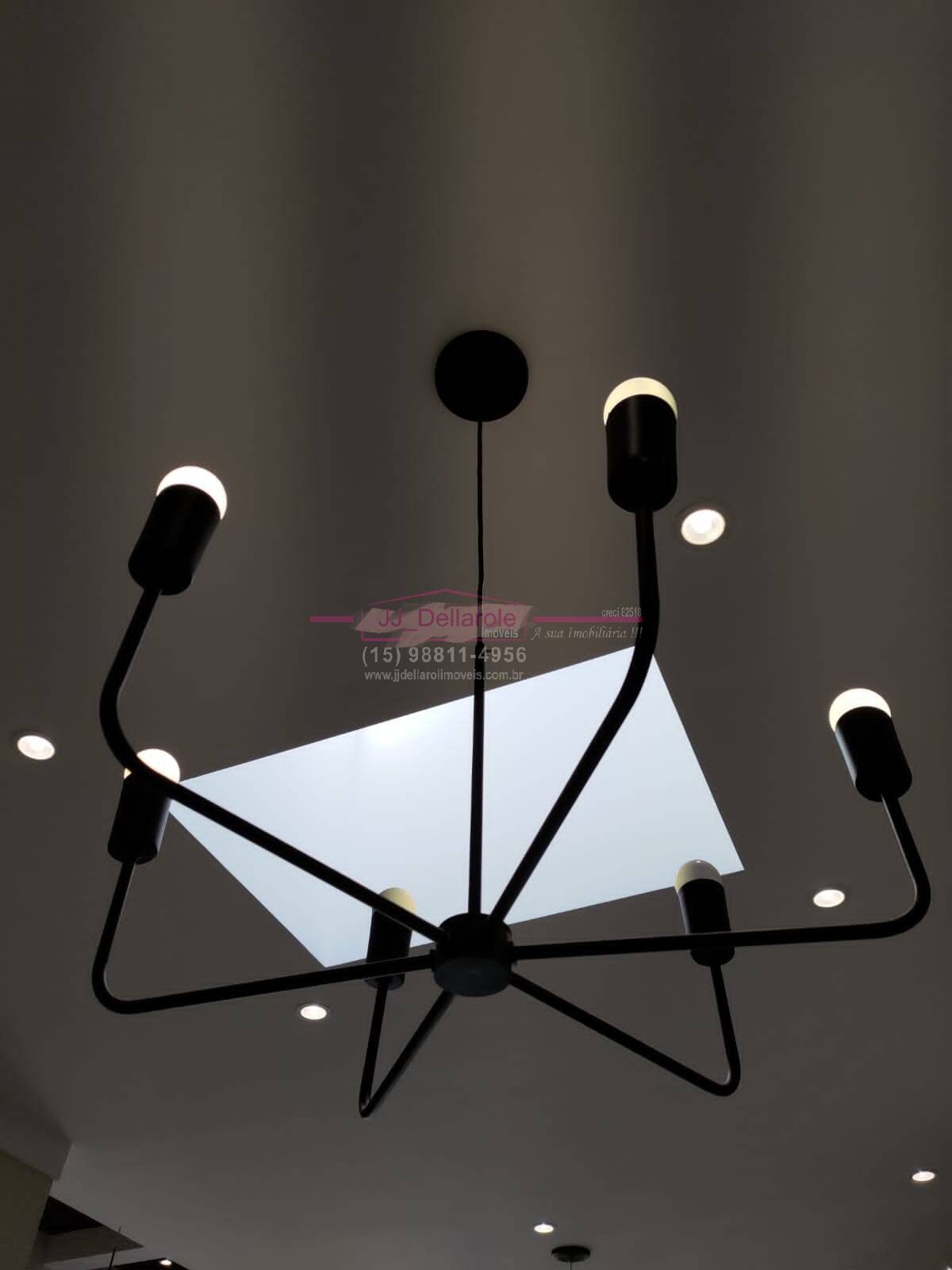 - Sala com pé direito alto, com coffered ceiling. Pendentes e luminárias em todos os cômodos.