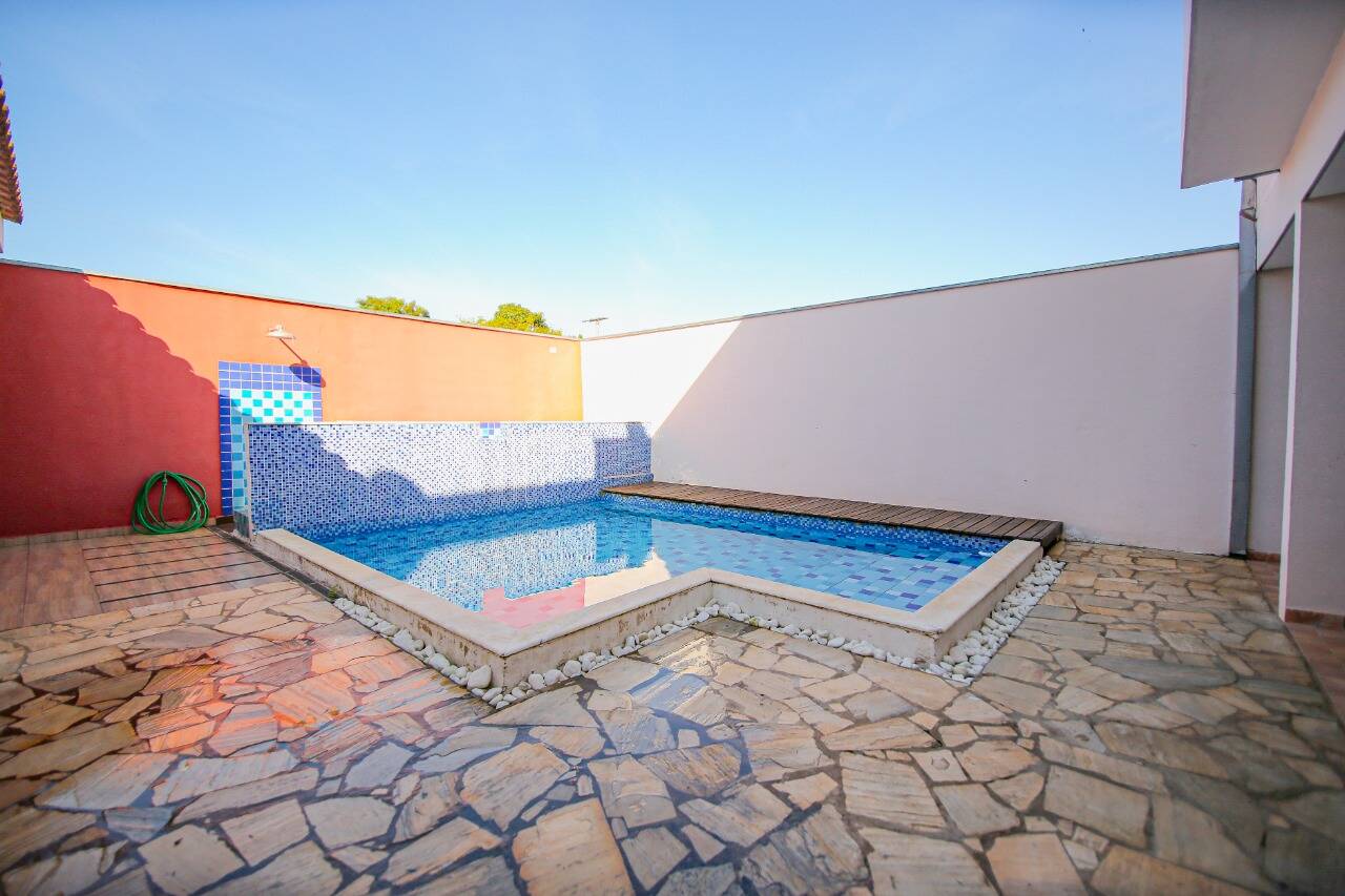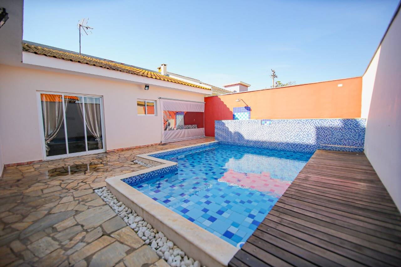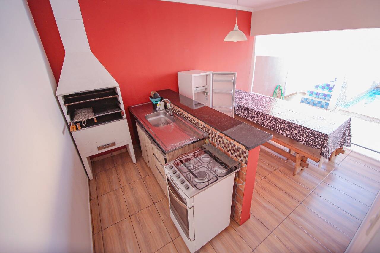- área gourmet com churrasqueira e piscina.