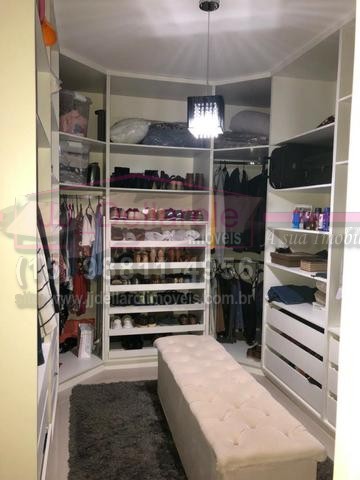 três dormitórios sendo uma suite com closet, sala de estar, cozinha com armários, lavanderia, varanda, churrasqueira e piscina.