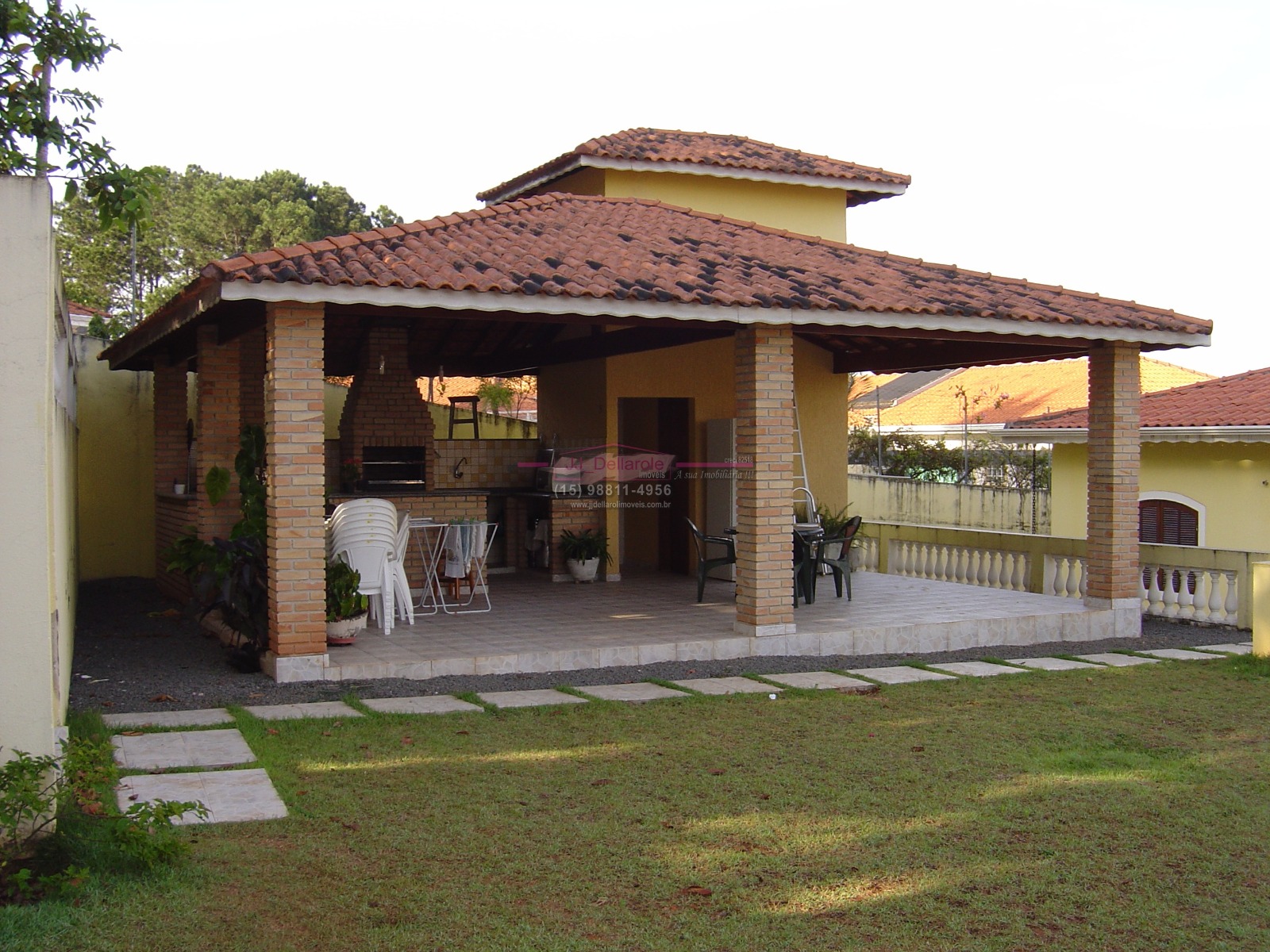 4 dormitórios, sendo 2 suítes + 1 banheiroSala 80m2 – 3 ambientes + lavaboAmpla cozinhaLavanderia + suíte para empregadaVaranda em toda a volta da casaSalão 60m2 com banheiro + garagem para 6 carros (3 cobertos, 3 descobertos)Churrasqueira 56 m2 + banheiro